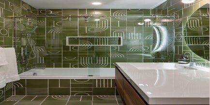 Originating in Morocco in the 10th century, handmade zellige tiles bring centuries of artisanal craftsmanship to modern interiors. These distinctive tiles, celebrated for their irregular edges, unique textures, and subtle color variations, have become a favorite choice for bathroom renovations. Their imperfect surface reflects light beautifully, creating a dynamic and ever-changing interplay of tones and textures.