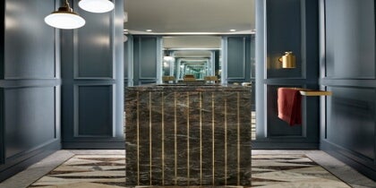 Each space tells its own story. Some whisper elegance with soft neutral palettes; others shout glamour with bold veins in marble, mirrored walls and chandelier lighting. It’s like walking into 19 movie sets — except you won’t need a ticket.